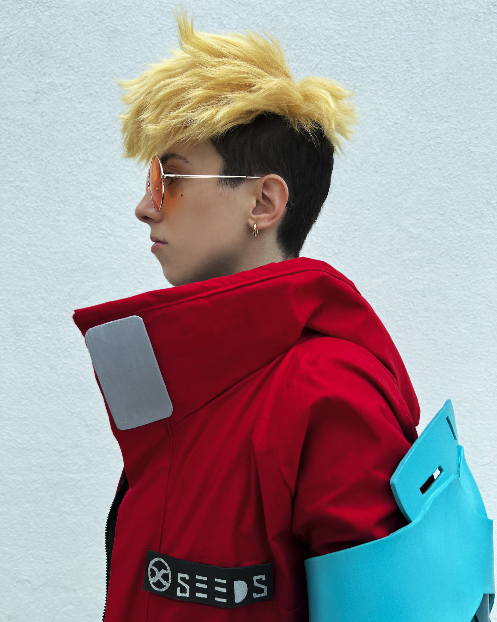 This cosplay was completed in May of 2023 and it was my most difficult costume to date! I completely patterned the prosthetic arm and the coat myself, which was a brand new experience for me! I had never worked with EVA foam before this build. The weapon was made out of a modified water gun.